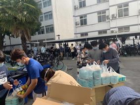 校外同事离校不离队,是管控期间党支部的强大后援、坚实保障。高海燕、季晶晶等同志多次送来生活物资,小到日化用品,大到被褥床垫,“还缺什么,尽管说”;在封校末期,罗荣飚同志负责“两点一线”闭环接送离校同事,清晨五点,他准时出发,夜阑人静,又披星戴月而来;为解决管控期间的洗浴问题,住在校内单教公寓的丁悦、刘达同志主动提供浴室和洗浴用品……