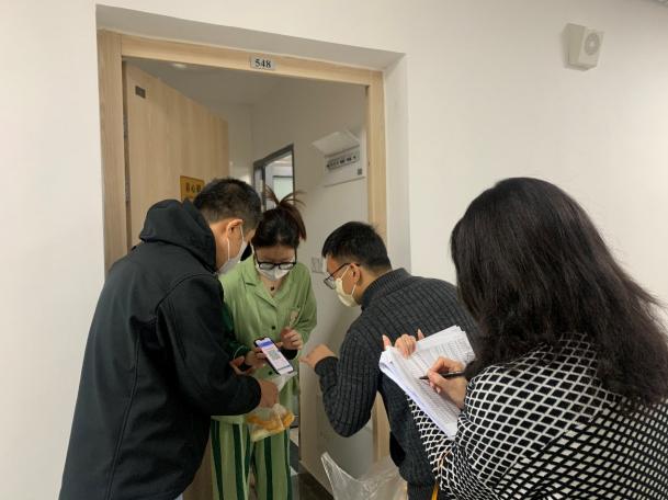 “出发!”每天清晨,天蒙蒙亮,支部工作群准时发出集合通知。发放一日三餐、核对同学们的核酸检测情况、更新楼内住宿情况……即便繁琐重复,大家也毫无怨言。扫楼时,有同事腰痛发作,却坚持继续上行,她说“每个人负责一层楼,这是事先布置好的”;发饭时,有同志被酸奶箱砸到了手,顾及不暇又继续分发,他说“不能因为少我一人,同学们领饭速度就慢下来”;王春兰同志在开展志愿工作时扭伤了脚,只简单抹了点药膏,说着“没事的,没事的”,就重回送餐队伍,继续坚持工作。